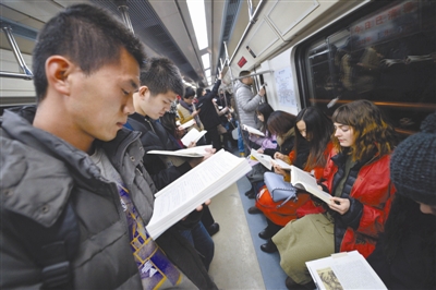 说做就做。王冲找了两个朋友,很快便确定了时间和地点:1月17日早上7点和晚上7点,从地铁13号线的西直门站到霍营站,其中从五道口站到霍营站是“读书时间”。“这是北京上班族平常上下班在地铁里的时间,选择这两个时间点代表着早出晚归都要阅读。”