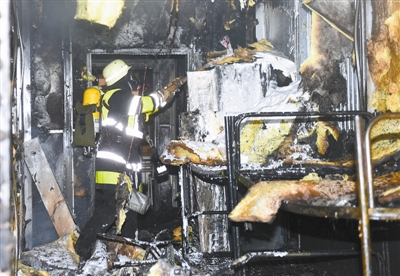 当地时间2016年1月27日,德国慕尼黑,一难民营的“集装箱住宅”发生火灾,75人安全撤离。 东方IC 供图