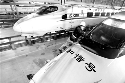 春运伊始即遭受寒潮天气来袭,为此,西安铁路局西安动车段成立了突击队。每天,突击队员们都会像蜘蛛侠一样爬上动车两端的车头,对动车组的“眼睛”——刮雨器设备进行全面复查和保养,及时将作用不良的刮雨器及其连带的水路系统进行维修更换,防止因冻害引发管路破裂、刮雨器喷水不畅等问题。