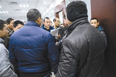 1月23日,陈长兴与工友到劳务公司结算工钱。
