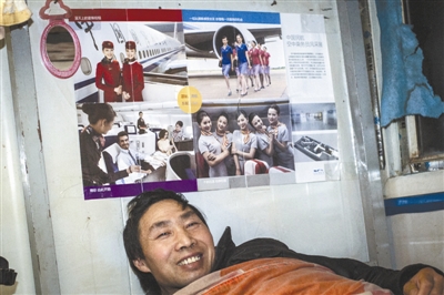 胡丛华的床头张贴着一张宣传画,他特意强调这是他去年坐飞机回家时航空公司送的。