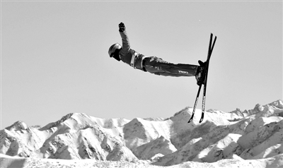 十三冬自由式滑雪空中技巧男子组比赛中。