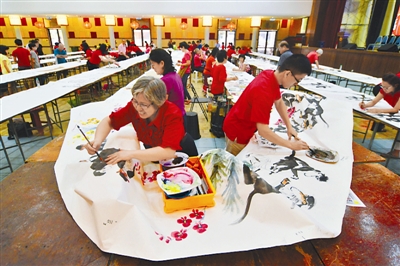 1月31日,在马来西亚雪兰莪州巴生,书画艺友们在创作猴子书画作品。当日,为迎接猴年的到来,马来西亚50名书画艺友在3位老师的协助下花费7个小时,完成了一幅以猴子为主题的书画作品,总长达190.5米,创下马来西亚最长的“猴子书画”作品纪录。该画作以《马中“猴”好》为题,以水墨“猴”画、书法“猴”字为主,表达了美好的祝福。