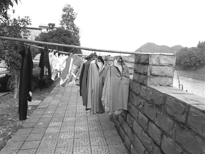 在浙江开化县华埠镇江滨路上,有位居民将个人的衣物晾晒在人行道上,行人只能绕道行走。这就是将私人的行为带到了公共场所中来,如此只顾自己方便,而不管别人的霸道晾晒,实在不文明。