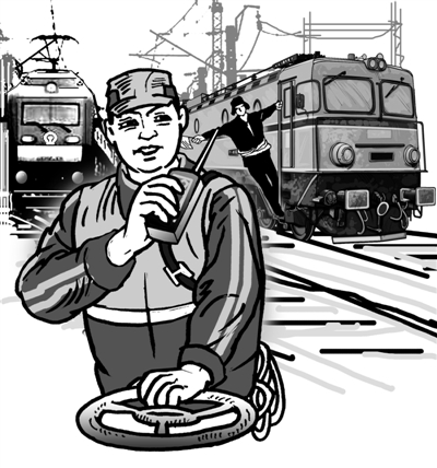 “从制动员、连接员、调车长一路走来,调车已经成为我生活的一部分,哪怕苦一点儿,累一点儿,也要把它干好!”赵思佳说。(漫画 法明)