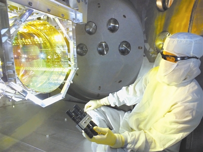 2月11日,加州理工学院、麻省理工学院以及“激光干涉引力波天文台(LIGO)”的研究人员当天在华盛顿举行记者会,他们探测到引力波的存在。引力波是爱因斯坦广义相对论实验验证中最后一块缺失的“拼图”。这是技术人员在关闭舱门抽制真空前检查光学部件。 新华社发