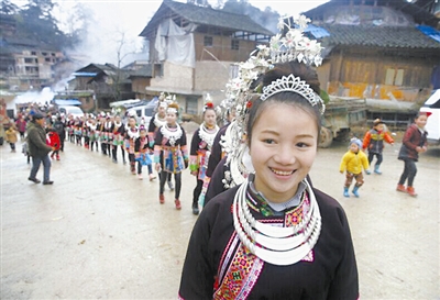 2015年,过境黎平县的贵广高铁正式通车,原本就有些名气的侗寨婚礼开始成为当地的一张新名片。据相关部门统计,今年春节期间,该县有80多个侗寨390对新人举办集体婚礼,引来10万中外游客一饱眼福。