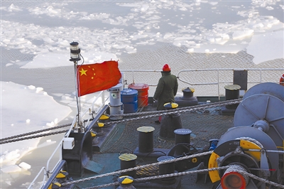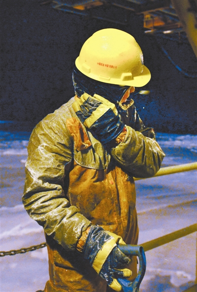 在渤海井架的甲板上,及时除冰是队员们的重要工作。