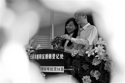 当日是西方情人节,许多新人选择在这一天登记结婚,告别单身。