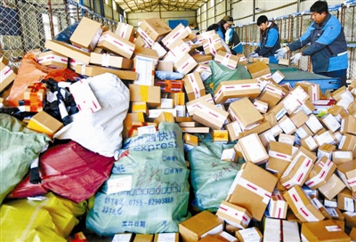 春节过后,面对大量的快递包裹,众多快递公司的快递员开始进行分拣工作,争取早日将快递包裹送到用户手中,提供最优质的服务。 曹建雄 摄/东方IC
