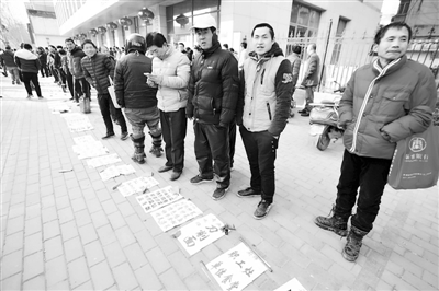 2月15日,西安市文艺北路,一自发形成的人力资源市场上,满是想应聘各种工作的进城务工人员。 黄利健 摄/视觉中国