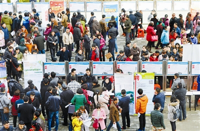 当天上午,合肥市2016年新春首场大型招聘会在包河区举行。135家用人单位提供的各类岗位超过8000个,吸引了上岸渔民、蓝领工人及高校毕业生等1万余人前来求职应聘。