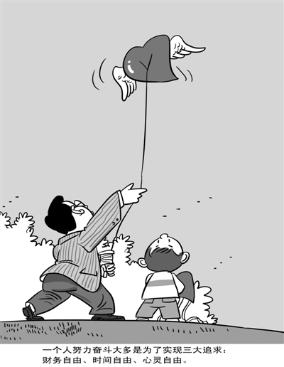 一个人努力奋斗大多是为了实现三大追求:财务自由、时间自由、心灵自由。赵春青 画