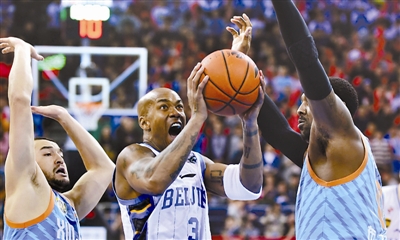 2月21日晚,在CBA联赛四分之一决赛第四场比赛中,北京队主场以94比103不敌新疆队。新疆队晋级四强。图为北京队马布里突破上篮。