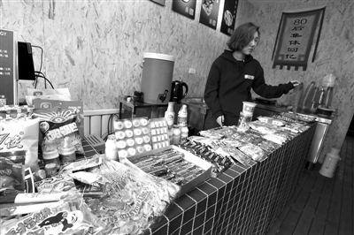 在辽宁鞍山有这么一家小店,里面摆满了小淘气糖、无花果、瓦夫巧克力、鱼肉串……这些都是“80后”们孩童时期最爱的零食。