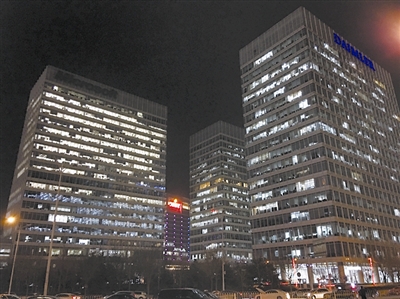 为晚上9点,仍然灯火通明的北京某些写字楼。