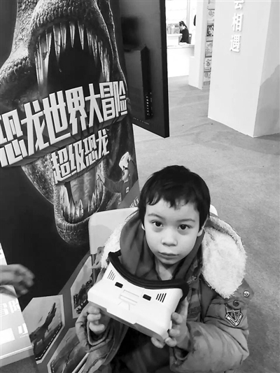 “VR+图书”是将虚拟现实技术与传统的科教读物相结合,是一种接触式的“阅读”体验。现场工作人员介绍,VR技术把“读万卷书”和“行万里路”有机结合起来,带给观众穿越的乐趣和眼见为实的亲身体验。“通过趣味横生的科普绘本,戴上VR眼镜,进入一个真实的恐龙野生动物园,近距离观看恐龙的活动。借此激发儿童对大自然的兴趣,并培养亲子阅读的家庭学习、娱乐的习惯。”