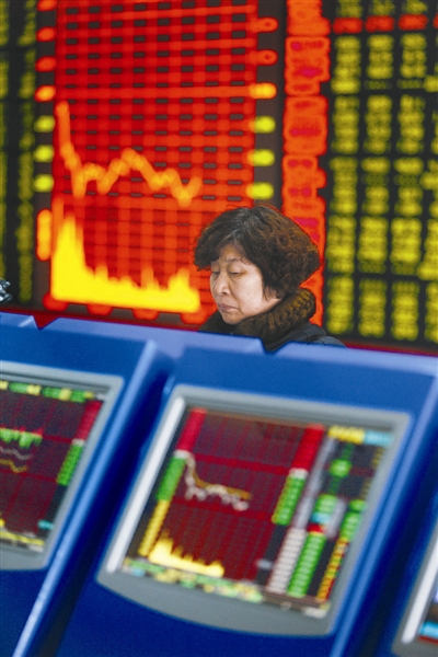 2月29日,股民在安徽省淮北市一证券营业部内关注股市行情。
