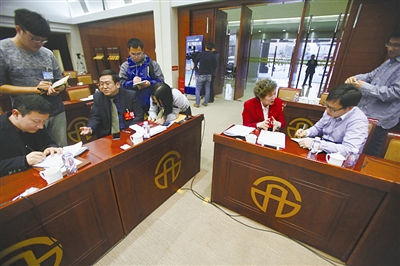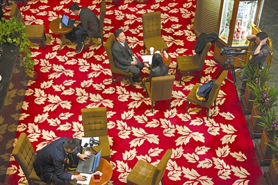 3月5日,北京铁道大厦内小组讨论的间隙。