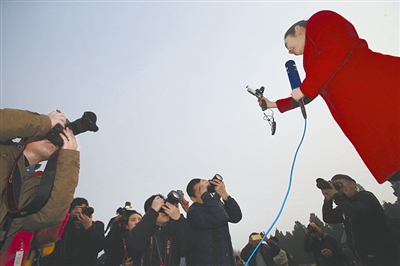 3月3日,一位电视台主持人用手机对两会进行直播报道,她的举动吸引了众多拍摄者。