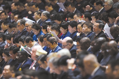 3月5日,人民大会堂,列席会议的全国政协委员们。