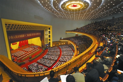 3月5日上午,十二届全国人大四次会议开幕式会场。