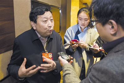 3月9日,全国政协委员、中国东方电气集团有限公司董事长王计(左一)在接受记者采访时说,企业只有生的机制,没有死的机制,是不稳定的,国家要高度关注企业退出机制,这样才能让市场秩序不乱。