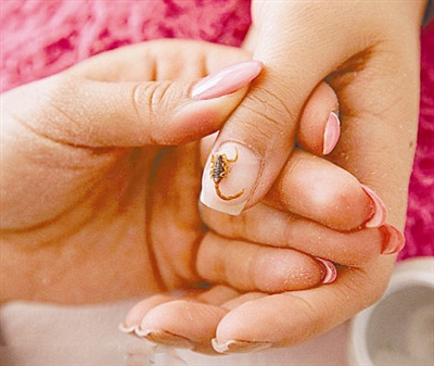 据外媒报道,墨西哥一种剧毒蝎——红木蝎近日成为拉美女性的美甲新宠,幼年红木蝎的尸体被粘到指甲上,看上去充满诡异的美感。