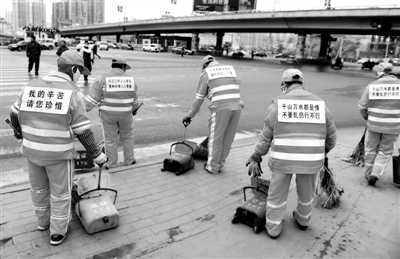兰州:环卫工身着“萌萌哒”标语马甲亮相街头