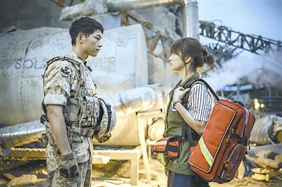 《太阳的后裔》以韩国军队海外维和为背景,讲述的是特种部队大尉刘时镇与医疗志愿组医生姜暮烟的爱情故事。该剧从筹划阶段就以韩中两国同时开播作为目标,采取了先拍后播的模式。中国视频网站购买该剧的版权每集23万美元,比先前的增长了数倍。整部剧的版权费用折算人民币约2400万元。