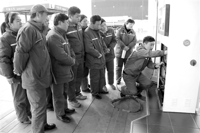 中国石化安徽淮北石油分公司积极推行“站内培训”模式,选择实战经验丰富的管理人员兼任培训师,帮助基层班组员工提升实际操作技能。图为培训师在淮北渠沟油气合建站现场讲解加气设备知识。徐杨 摄