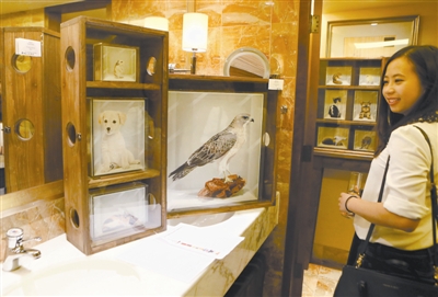 3月26日,观众在第八届亚洲当代艺术展上参观。展会设置于港丽酒店3层楼的客房内,展出来自全球的3000多件艺术作品,包括绘画、雕塑及摄影作品等。