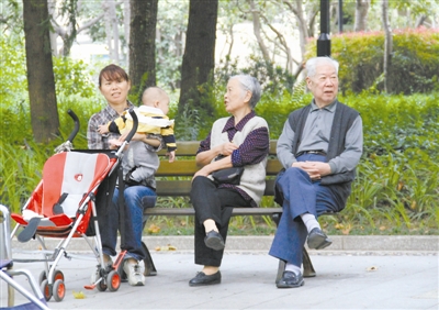 上海,公园中的老年人和幼儿。随着人均寿命大幅提升,老龄化已经成为必须面对的问题。安迪 摄/东方IC