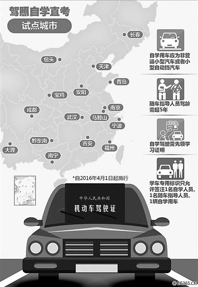 近日,公安部、交通运输部就联合下发《关于做好机动车驾驶人培训考试制度改革工作的通知》,向社会公布,将于4月1日起,天津、包头、长春、南京、宁波、马鞍山、福州、吉安、青岛、安阳、武汉、南宁、成都、黔东南、大理、宝鸡16个城市正式开展自学直考试点。学车拿驾照,过程更便捷。