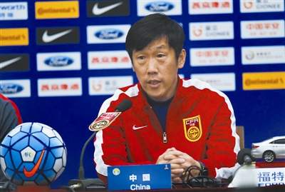 3月28日,中国队主教练高洪波在新闻发布会上。 新华社记者 郭勇 摄