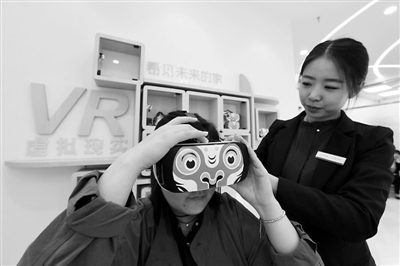 3月30日,工作人员使用“VR”眼镜向购房者展示销售的商品房。