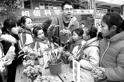 从3月上旬开始,重庆市科协开展“科普大篷车渝州行”活动,组织科普大篷车来到武隆、彭水、云阳、梁平等区县,为中小学生带去了手指发电、穿墙而过、看谁滚得快等高科技展品,以及奇趣食虫植物展览,让孩子们多角度地体验科技魅力。图为南山植物园的科技辅导员在梁平县城东小学向小学生们介绍奇趣植物——碰碰香。刘辉 摄
