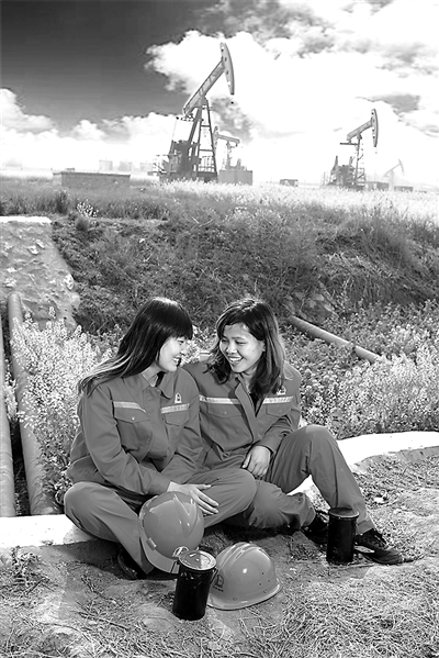 春天来了,地处桐柏山区的油区田野里,河南油田采油一厂的两名采油女工在巡线路上歇息聊天。这一刻,蓝天白云、空气清新,计量站所管理的油井与金黄的油菜花和迷蒙的远山相融,定格成一道美丽的风景。高志刚 摄