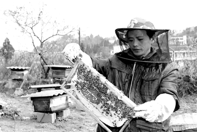 ▲一边在煤矿上着班,一边用业余时间养110多箱蜜蜂,日子过得挺潇洒。周伦强是重庆能源集团逢春煤矿采煤4队的一名矿工,去年开始,他利用业余时间养蜜蜂。“现在煤矿不景气,说不准哪天就分流了,但自己有了这一技之长,即便分流也不怕。”周伦强自豪地说。 张登泽 摄