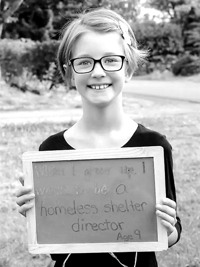 当问到Hailey长大后想做什么,这个9岁的小女孩说:“我想成为Homeless Shelter(流浪汉小屋)的管理员。”