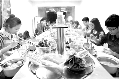 杭州:餐厅推出旋转麻辣烫 食材自取受追捧