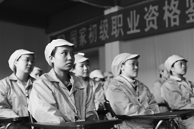 4月5日,四川省华蓥市职业教育中心的技术老师在设于华金润电子厂的课堂上为学员授课。 据悉,华蓥市针对新兴产业人才缺乏的现象,整合原有的农广校、农机校等各类培训机构和职业高中,成立了职业教育中心,把课堂设在车间,为企业量身培养专业人才,缓解了企业用工荒。