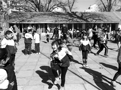 课间休息,几百名学生在不到400平方米的校园里玩耍。