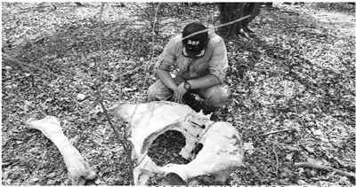 队员在马纳普斯国家公园内发现大象的骸骨。蓝天救援队供图