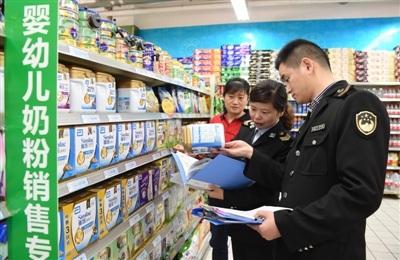 近日,安徽省部分地区的市场监管部门开展针对婴幼儿奶粉市场的专项排查,一旦发现假冒、伪劣奶粉制品将及时查处,有违法线索的及时移交公安部门依法处理。新华社记者 郭晨 摄