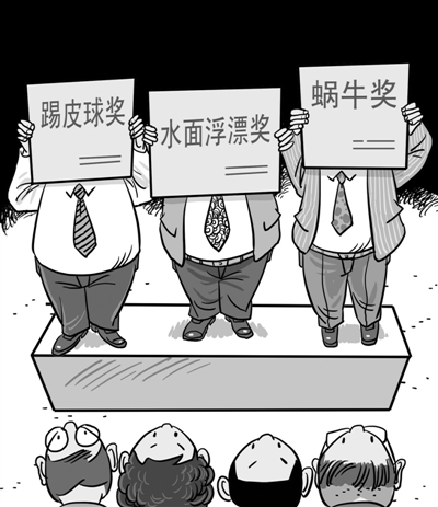 据《工人日报》报道,“踢皮球奖”“水面浮漂奖”“蜗牛奖”……贵州省贵定县设立一系列“个性”奖项,颁给一些工作效率低下、不作为的单位。近日,该县卫计局因2015年度计生工作在黔南州各县(市、区)考核中均排名最后一位,并与之前局党组向县委、县政府所汇报的情况严重不符,被授予了“水面浮漂奖”,成了首个“吃螃蟹”的单位。