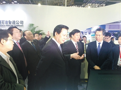 图为中国石油天然气管道局、中国石油管道公司、廊坊市人民政府等单位的负责人作为主办方向与会嘉宾介绍中国最先进的管道技术。本报记者 王冬梅 摄影报道
