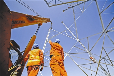 3月13日,由陕西送变电工程公司承建1000千伏榆横-潍坊特高压交流输变电线路工程4标段,在37号塔位组立首基铁塔。该工程是国家大气污染防治行动计划“四交四直”特高压工程中第五条输电通道,途经陕西、山西、河北、山东4省,计划2017年建成投运。(任长征)