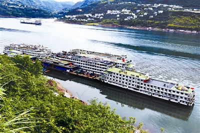 4月18日,在重庆云阳长席子轮船改建码头,多艘客运船舶在实施改造。