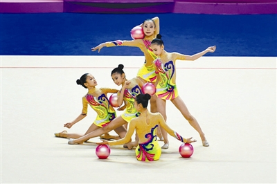 当日,2016年全国艺术体操集体锦标赛在重庆沙坪坝区体育馆开赛。在比赛首日进行的团体总分赛少年集体赛中,河北队以108.35分的总成绩位列第三名。 新华社记者 唐奕 摄